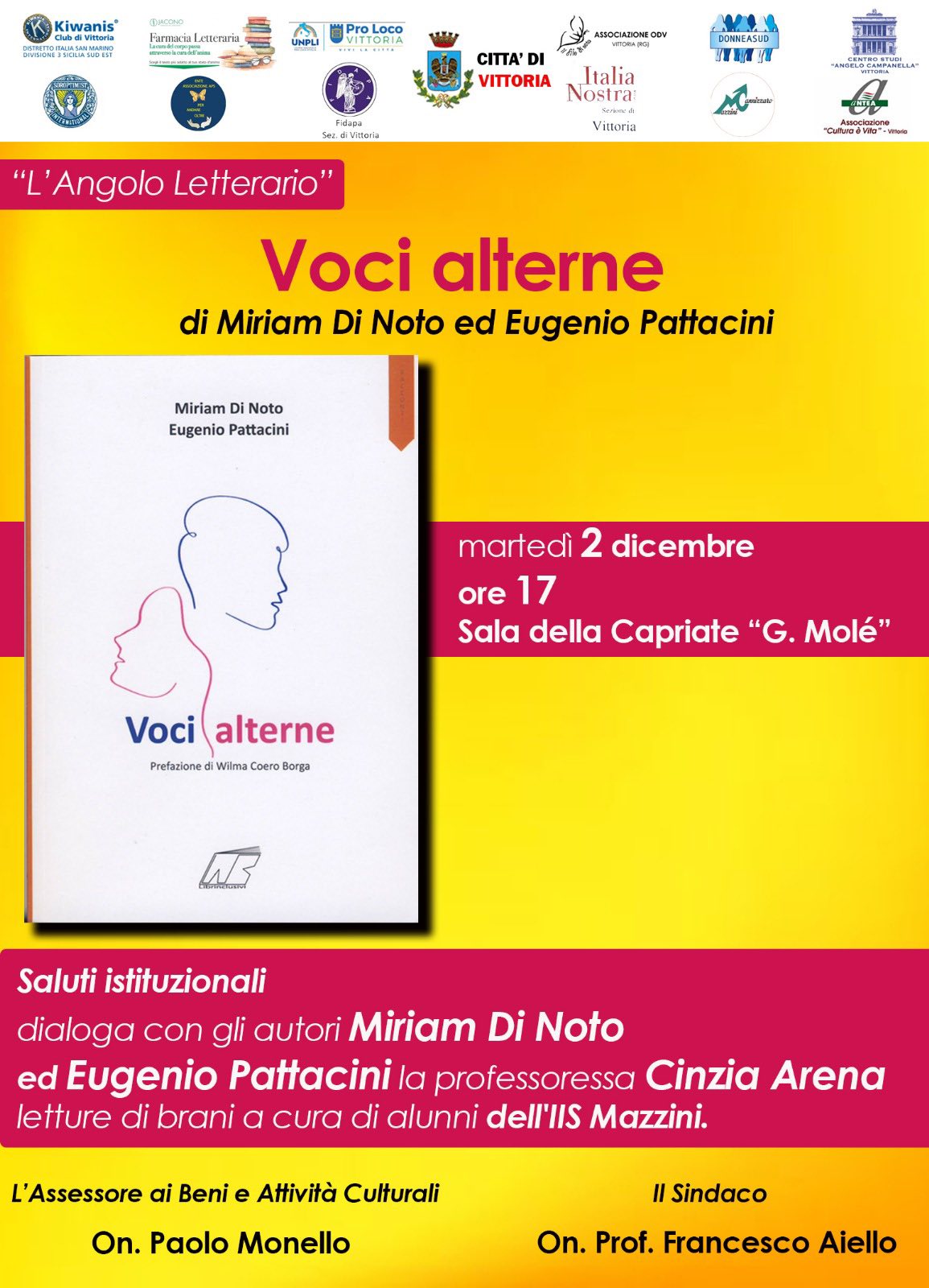 Martedì 2 dicembre alle ore 17:00, presso la Sala della Capriate “G. Molé”, si terrà la presentazione del libro Voci alterne di Miriam Di Noto ed Eugenio Pattacini.
