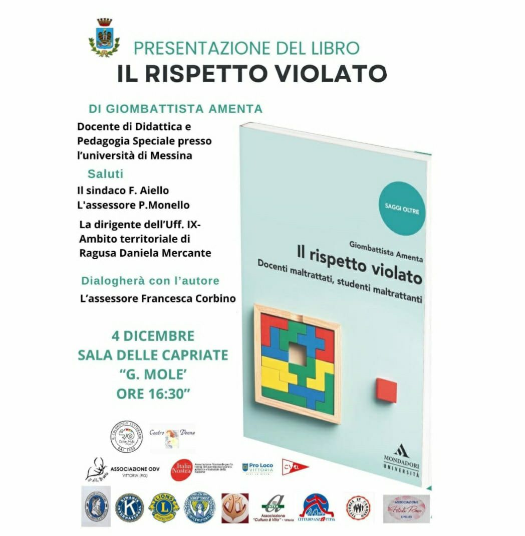 Giovedì 04 dicembre presso Sala delle Capriate “G. Mole’”, alle ore 16:30, si terrà la presentazione del libro “Il rispetto violato. ” di Giombattista Amenta, docente di Didattica e Pedagogia Speciale presso l’Università di Messina.