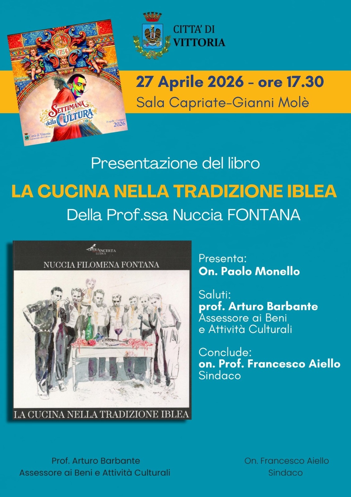 Settimana della Cultura - Presentazione del libro 'La cucina nella tradizione iblea' della Prof.ssa Nuccia Fontana presso Sala delle Capriate "Gianni Molè".