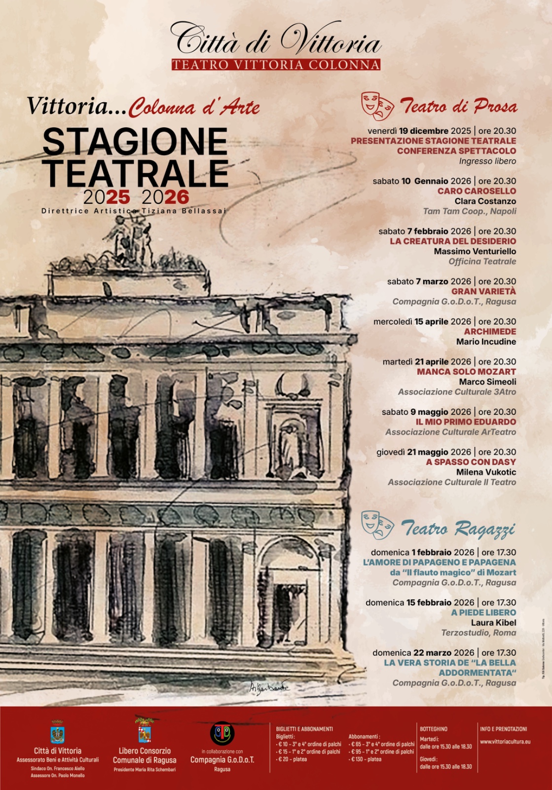 La Stagione Teatrale 2025/2026 si inserisce nel progetto “Vittoria… Colonna d’Arte”, promosso dal Comune di Vittoria, con l’obiettivo di rafforzare l’identità culturale della città e rendere il teatro un luogo vivo, aperto e partecipato.